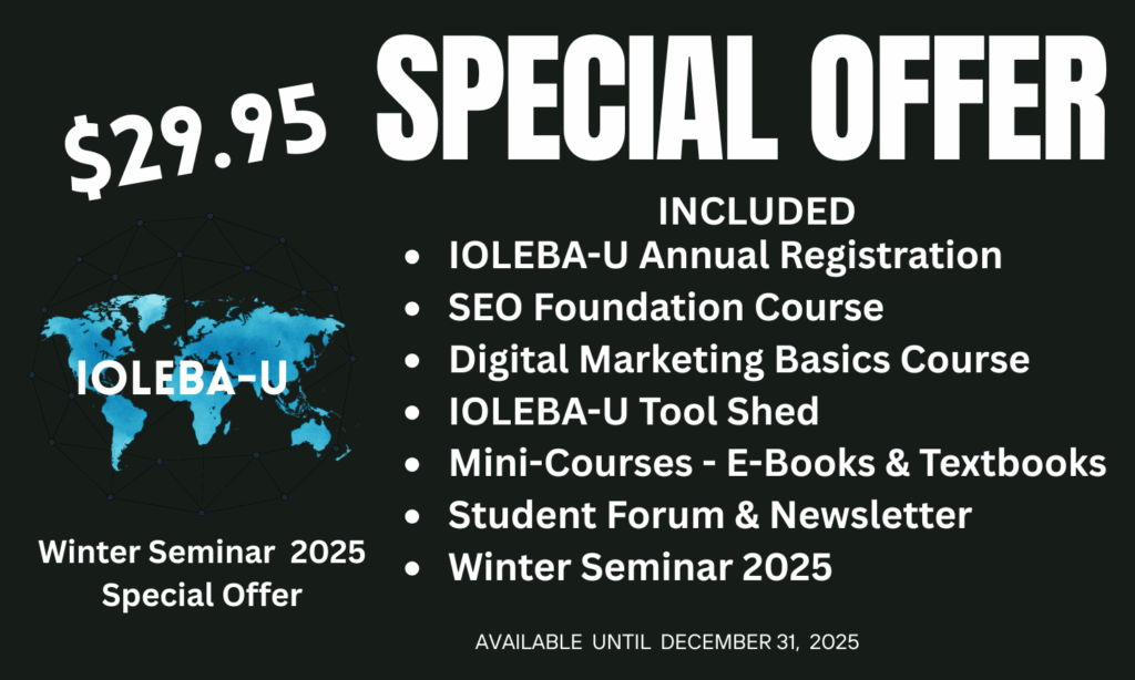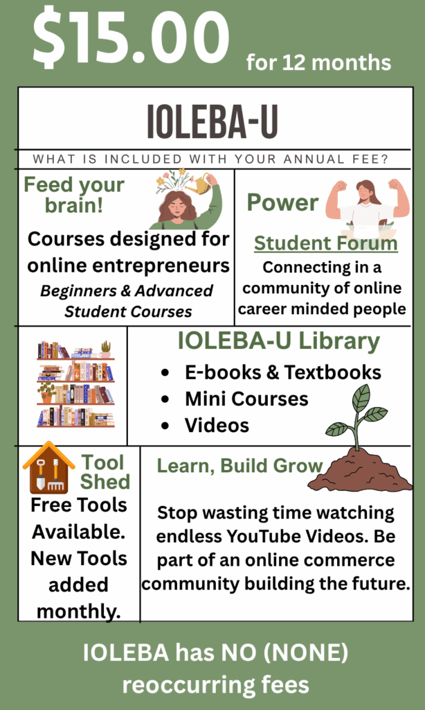 IOLEBA-U is the educational branch of the International Online Business Association, created to equip entrepreneurs with the knowledge, tools, and support they need to succeed in today’s digital economy. Through interactive courses, practical tools, a growing student library, and live seminars, IOLEBA-U is designed as a step-by-step pathway — building blocks for launching, growing, and sustaining an online business.