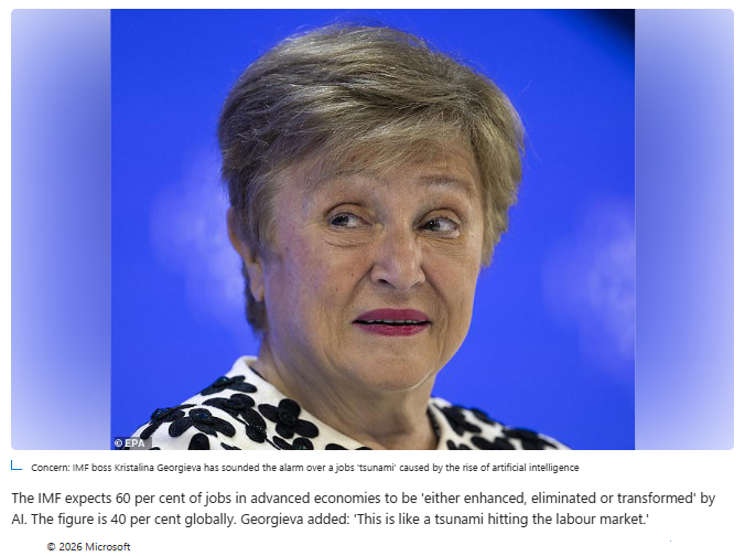 This story also echoes a message coming from the very top of the global economy. At the 2026 World Economic Forum in Davos, IMF Managing Director Kristalina Georgieva warned that AI is hitting labor markets like a “tsunami,” especially for younger workers and entry‑level roles, and highlighted that around one billion people worldwide will need to be re‑tooled for the AI era. She emphasized that uncertainty is now the new normal and urged leaders and workers alike to think of the unthinkable and prepare for deep disruption rather than assume stability.